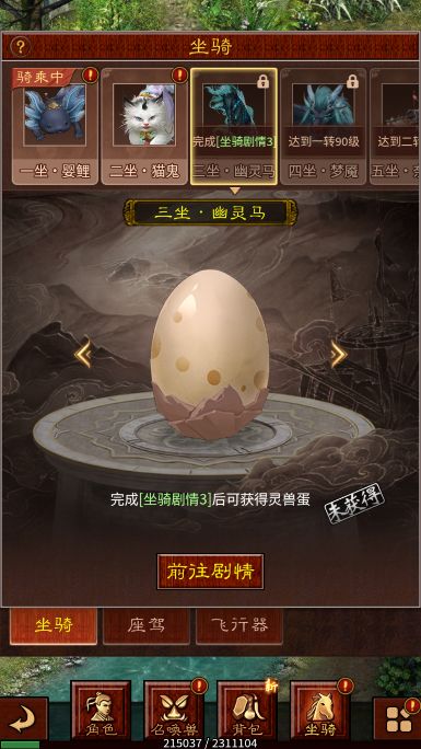 2、坐骑的培养建议根据自己的职业/宝宝类型来主力培养1—2个就行,大佬可以随意。