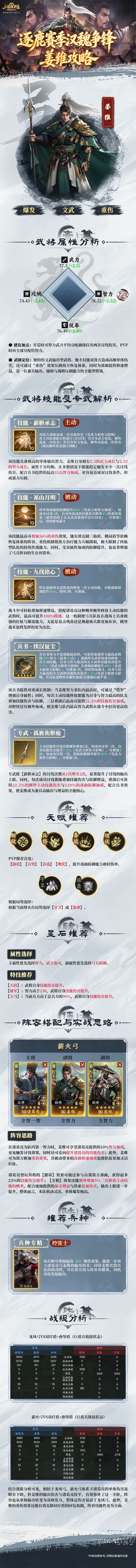有将承武侯遗志,兼资文武,智勇双全!本期天策攻略组将为各位主公带来新武将姜维的全面解析,喜欢的主公们记得点赞转发哦~