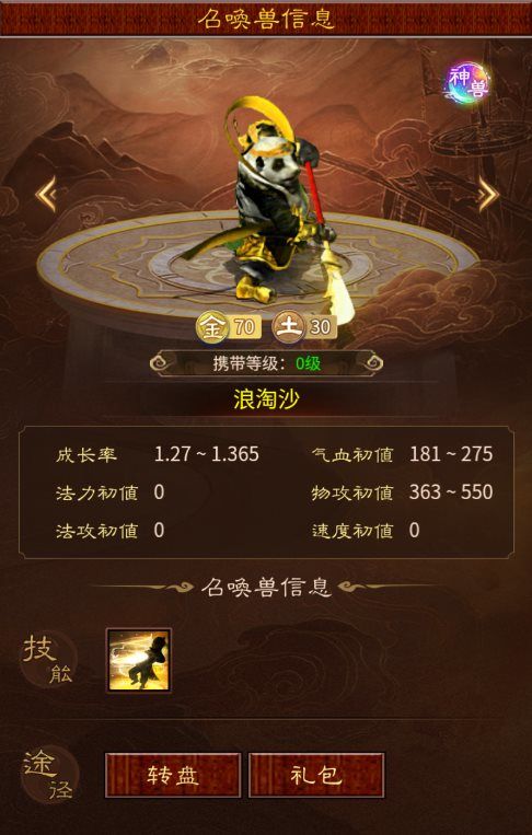 神兽里面大浪和范式是两只标准的物理宝宝,培养完成的范式与大浪,能在PVP竞技与PVE副本中为你提供巨大助力,前期有条件的兄弟们,可以着重先培养一只哟~