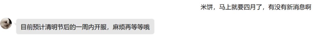 此前《尘白禁区》突然停服,官方长期静默引发大量玩家担忧。此次运营米饼在社群中给出明确时间信号,打破此前 “争取4月初开服” 的模糊说法,直接锁定清明后档期。由于消息并非4月1日发布,基本排除愚人节玩笑可能。