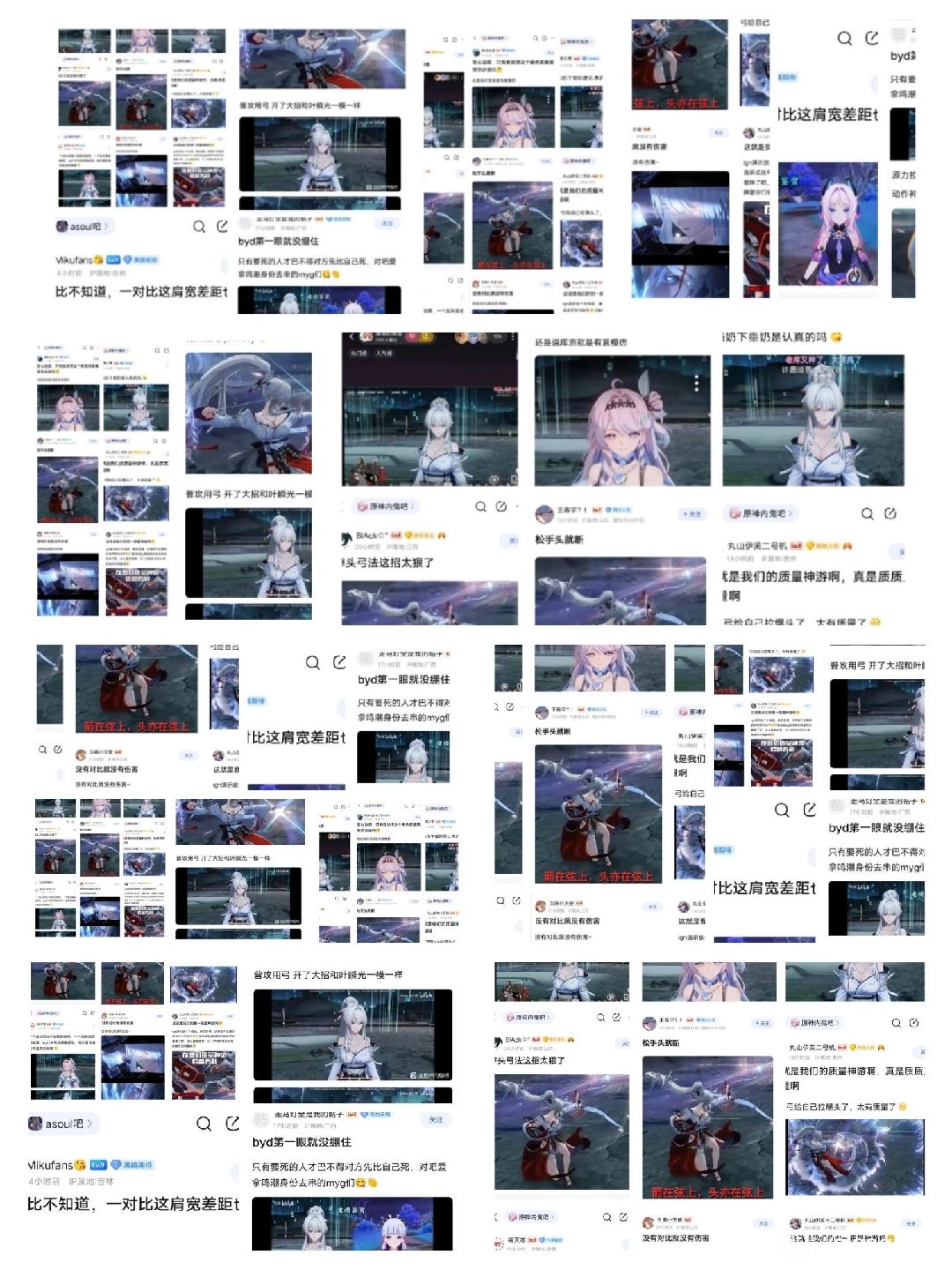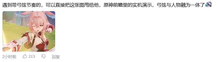 然而鸣潮玩家反手就甩出某游戏前瞻中角色弓弦与人物融为一体的截图回怼