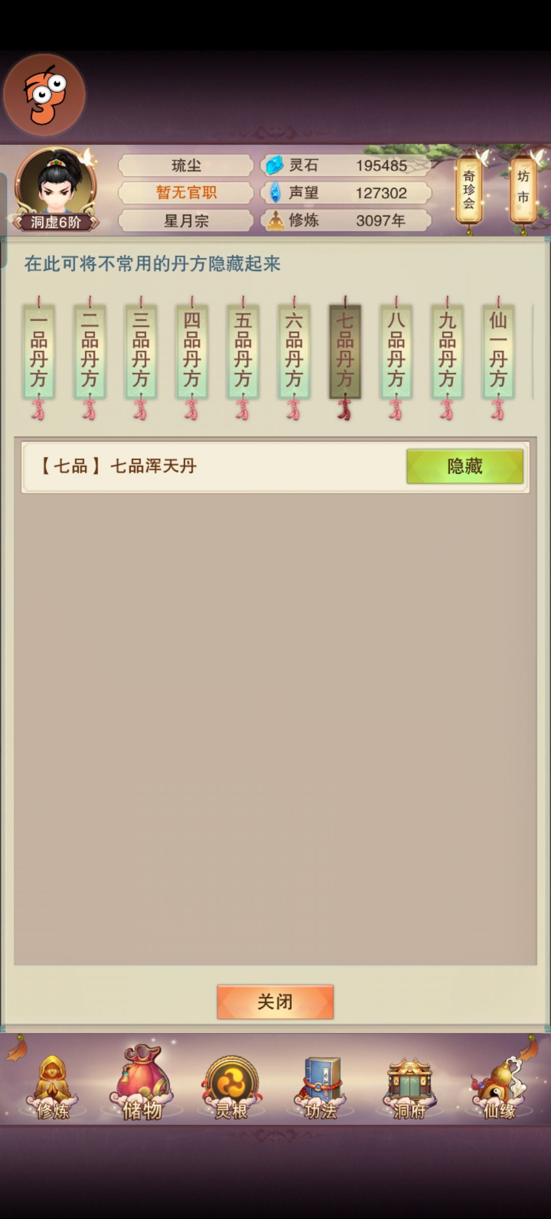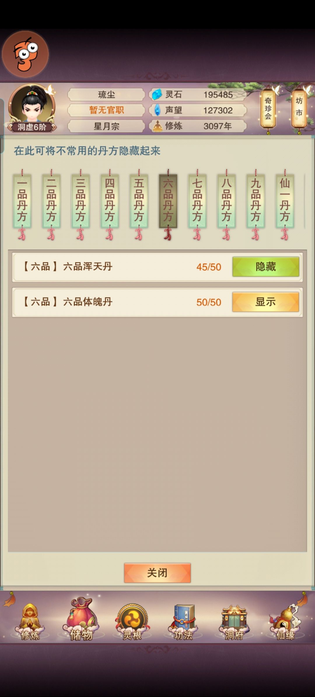目前洞虚6应该还有一个星期合体,6品混天将要练完,体魄已经毕业,7品好几天了只出了一个混天体魄一直不出,肉也要60了就是不知道为啥还上不了天二,欢迎各位大佬点评