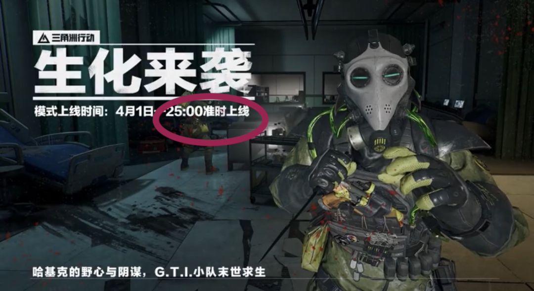 今日,《三角洲行动》官方发布全新玩法「生化来袭」预告视频,正式官宣这一玩家期待已久的生化模式即将登场。但视频中赫然标注的「4月1日25点上线」,因时间根本不存在,瞬间成为全网笑点,玩家纷纷玩梗调侃,热度直接盖过玩法本身。