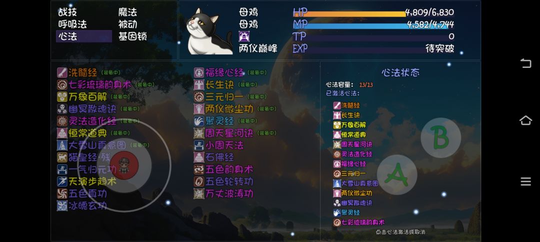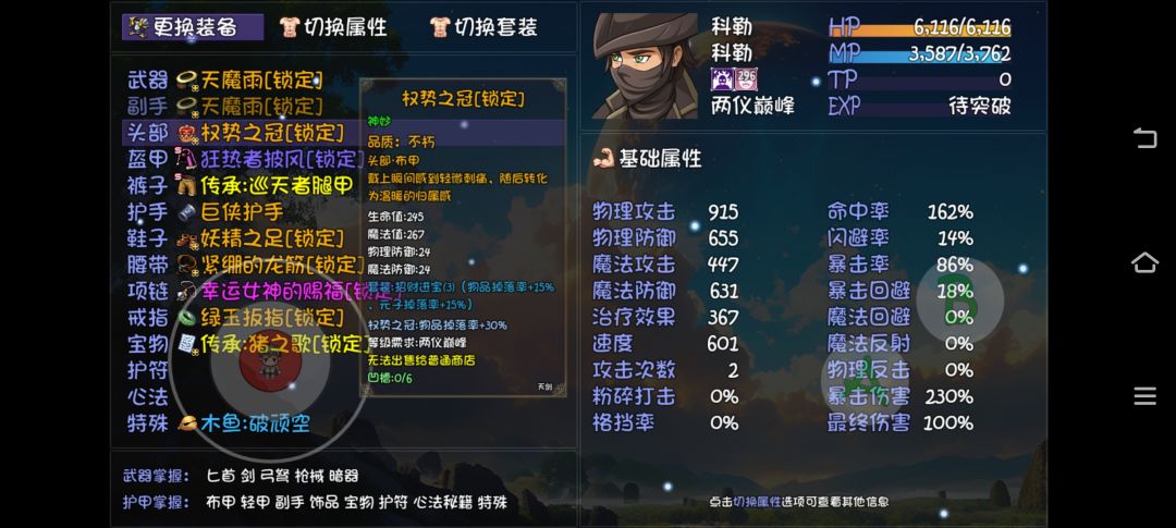 经过两天的努力,三元归一也练出来了,由于母鸡没办法佩戴钝器,使用组装箱神妙(小明有一套终伤20%)