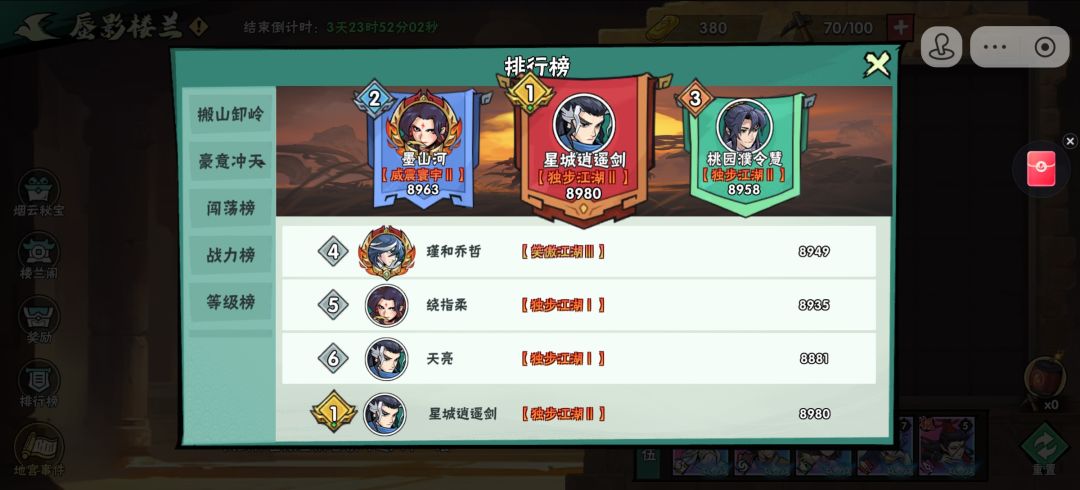 楼兰刷了个榜一,这应该是零氪微氪唯一能和大佬争锋的副本。