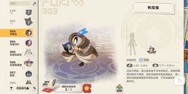 书魔虫16级进化成书卷守护,书卷守护36级且击败3只武系精灵(推荐打小怂猫家族)进化成古卷执政官,书卷守护36级且击败3只幻系精灵进化成古卷匣魔像。来到魔法学院生态广场后进入生态社, 点击书柜或者书本点“找到你了”就能获得书魔虫。图鉴编号303-306。