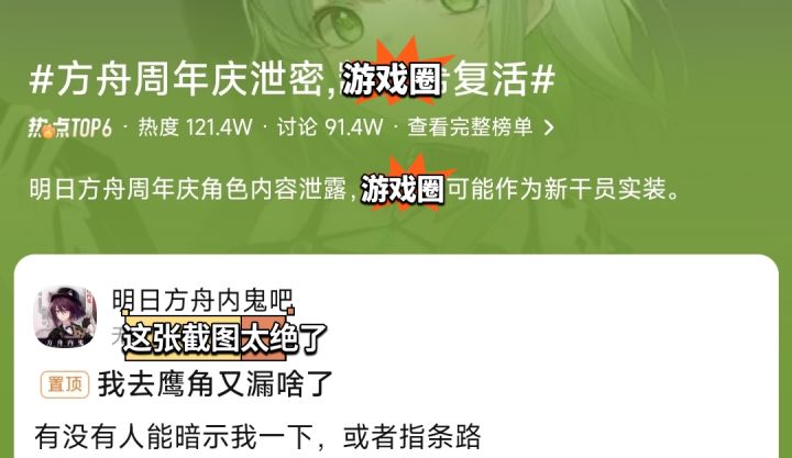 🔍网传明日方舟周年庆被泄密,话题讨论冲上热搜