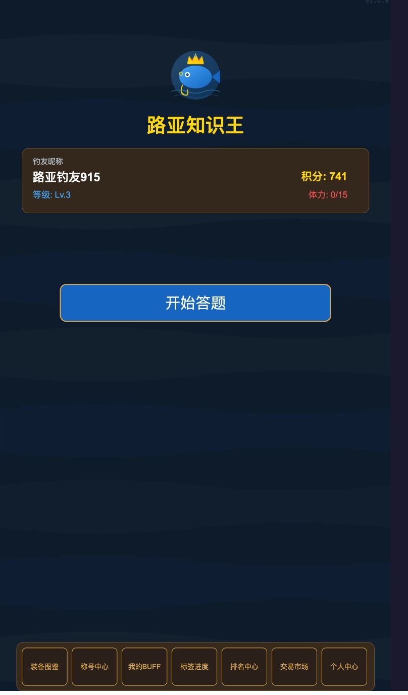 - 趣味:肉鸽品质 BUFF + 场景化随机事件,搭配路亚主题音效,打破答题单调。