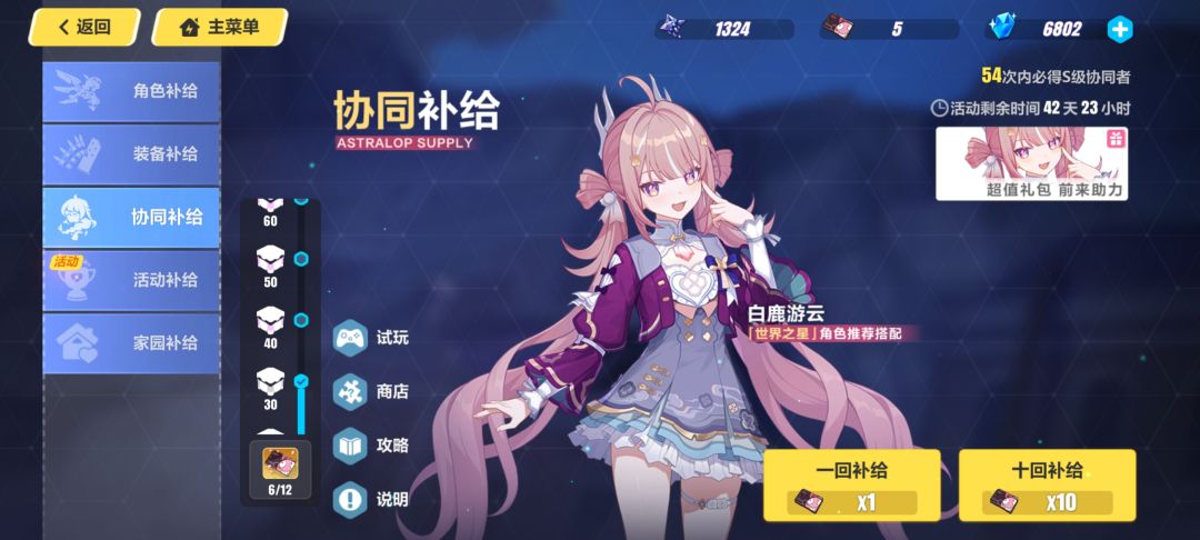 运气还特别牛掰,带着17700水和11张卡去抽,30抽游云2s,30抽出dlc,现在还剩两个十抽和4张卡