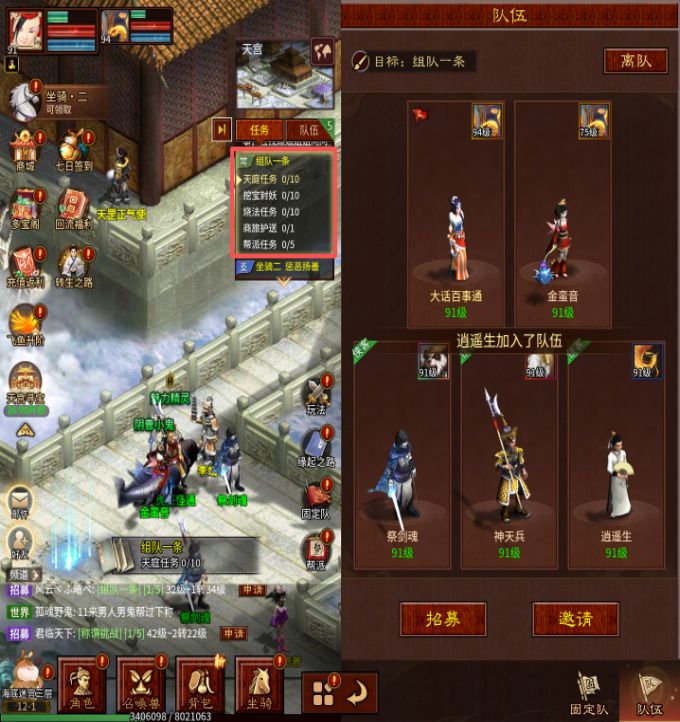 小提示:一条龙只需要队长在线即可,如果没时间混队是可以后台的哟~