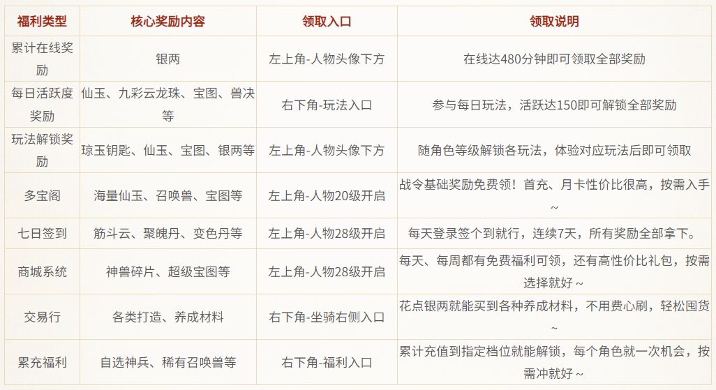 海量福利依然是缘起服的游戏特色!除了跟着剧情走、升等级能拿到的常规奖励,下面这些专属福利,性价比很高,这份「奖励+入口+领取规则」整理好啦,少侠们直接抄作业!