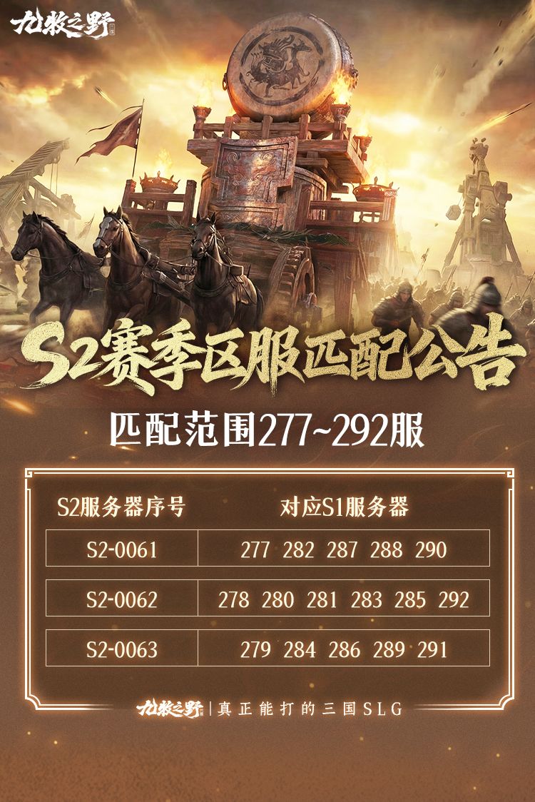 《九牧之野》S2赛季部分区服匹配分组公示