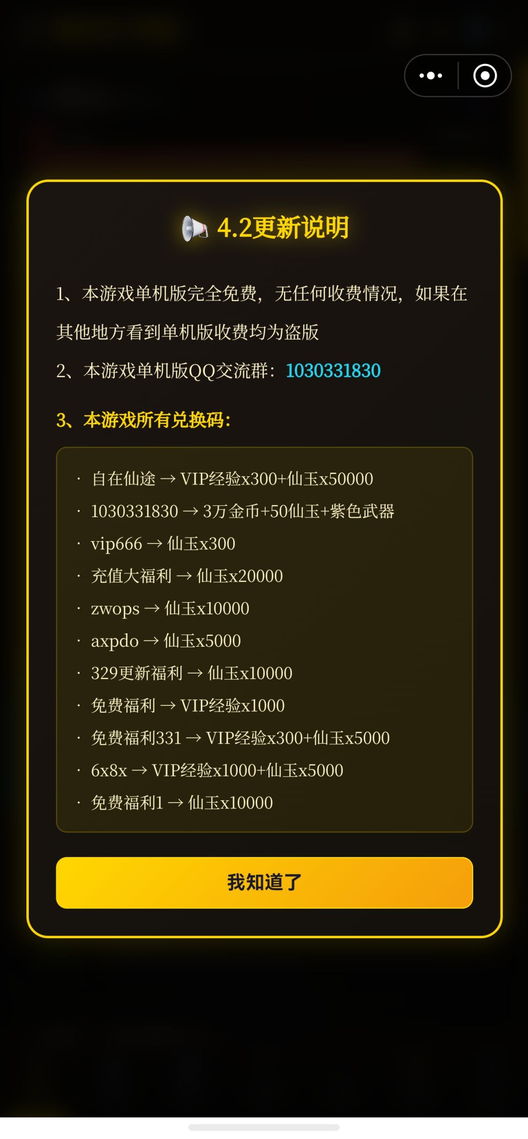 3、更新完整的码,注意自在仙途兑换码已变更为自在仙途单机版兑换码