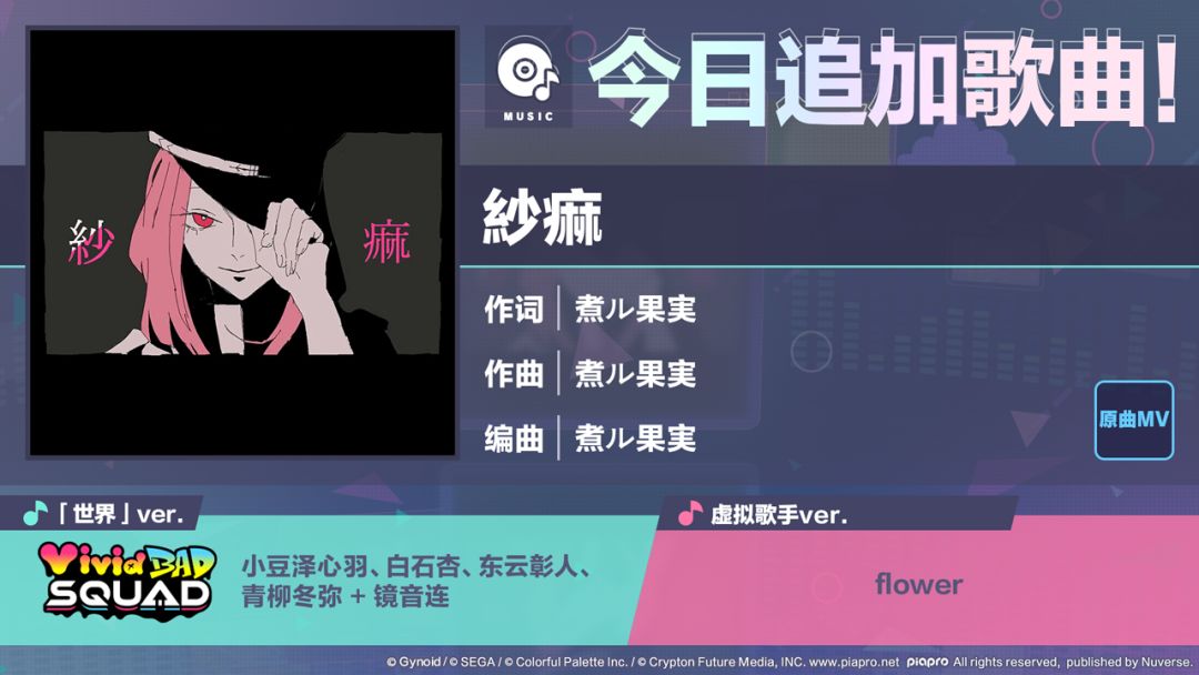 4/4 15:00起,追加歌曲《紗痲》!