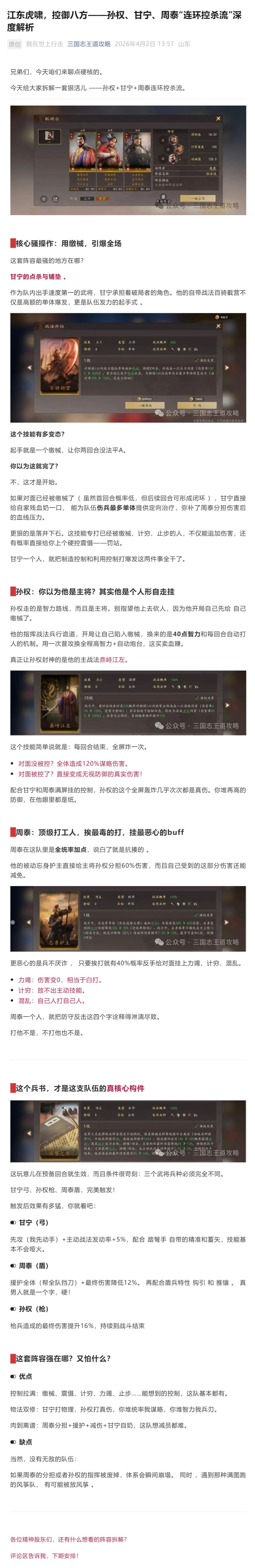 江东虎啸,控御八方——孙权、甘宁、周泰“连环控杀流”深度解析