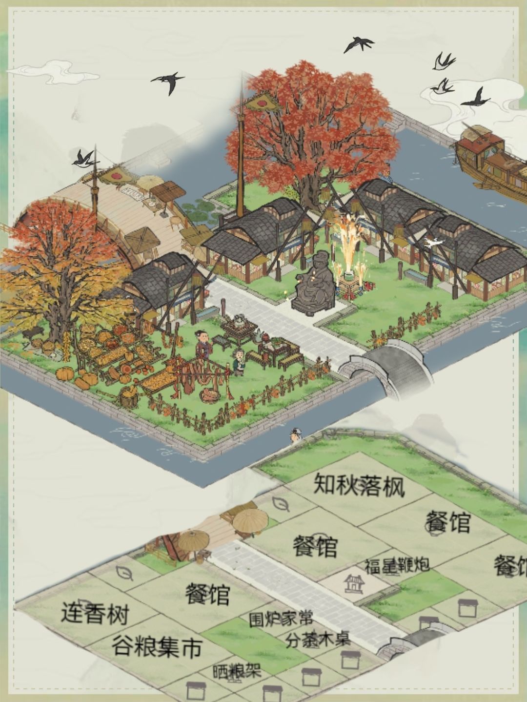 主要建筑:知秋落枫、连香树、谷粮集市、餐馆
