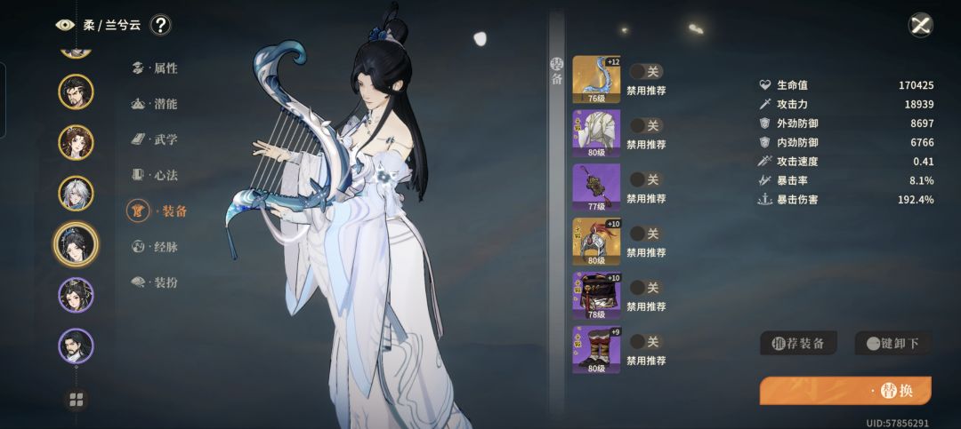 经脉1点开局不消耗怒气,兰云兮装备如下: