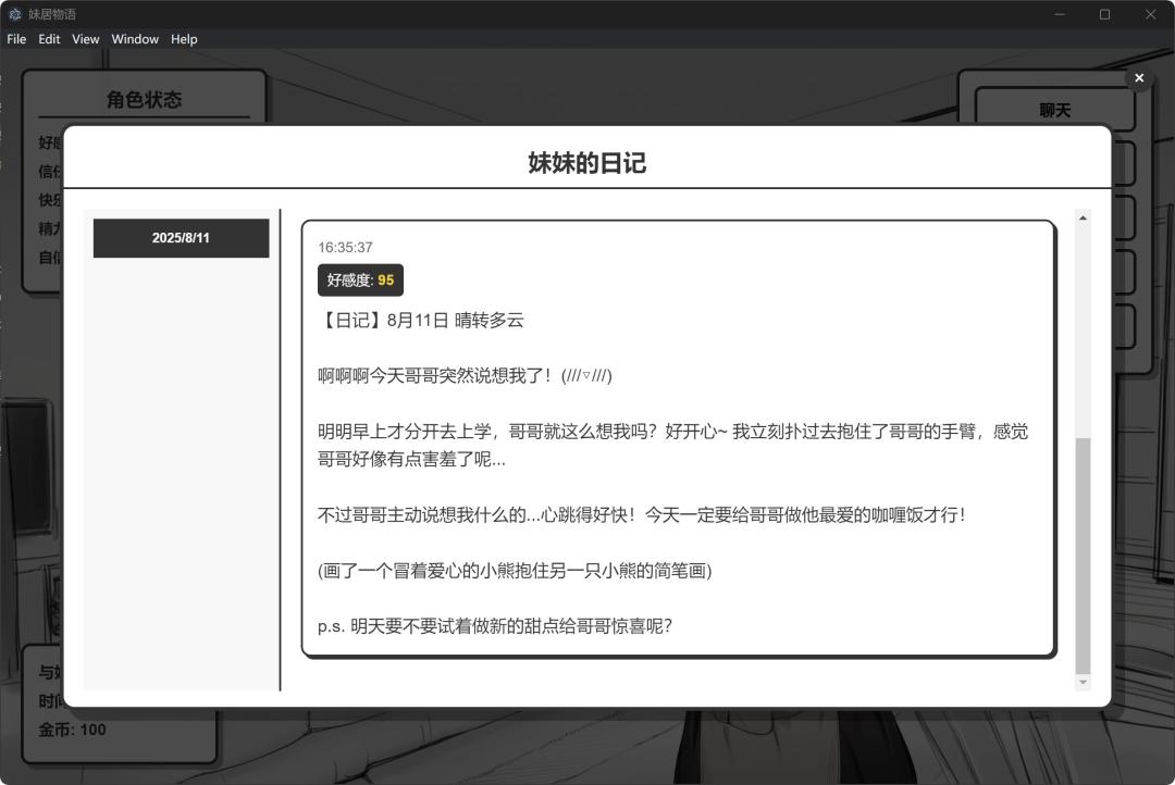 - 内心日记:可查看她的私密日记,了解她没说出口的想法 。