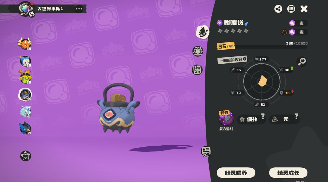 可能是目前游戏机制还不完善,我们现在只需要一只35级的“嘟嘟堡”就可以随便过大地图中的BOOS。4月2号还没修复,赶快用!!!