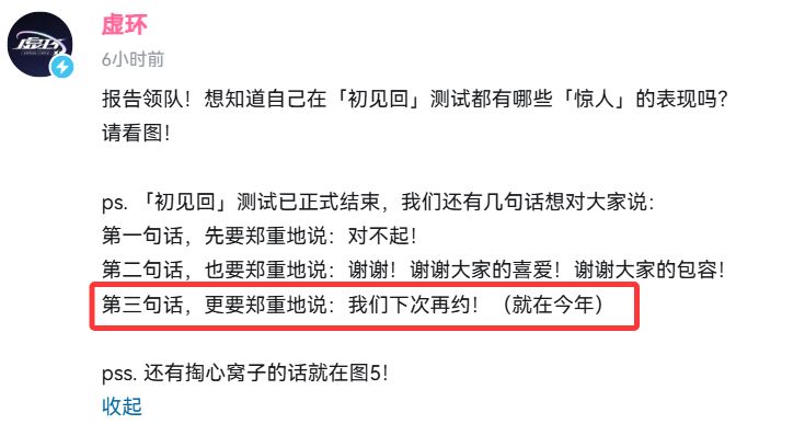 《虚环》首测于3月24日至 30 日开展,为期7天,采用删档不计费的保密模式,仅面向约2800名安卓用户开放。测试期间,开发团队聚焦核心战斗系统与养成框架进行验证,并通过问卷、活动抽选等渠道收集玩家反馈,为后续优化调整提供依据。
