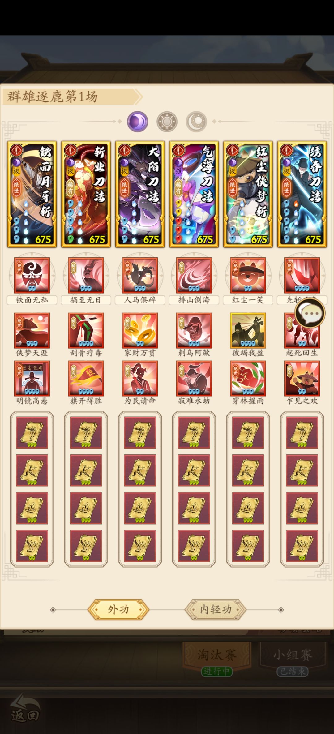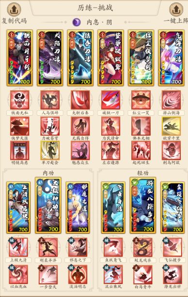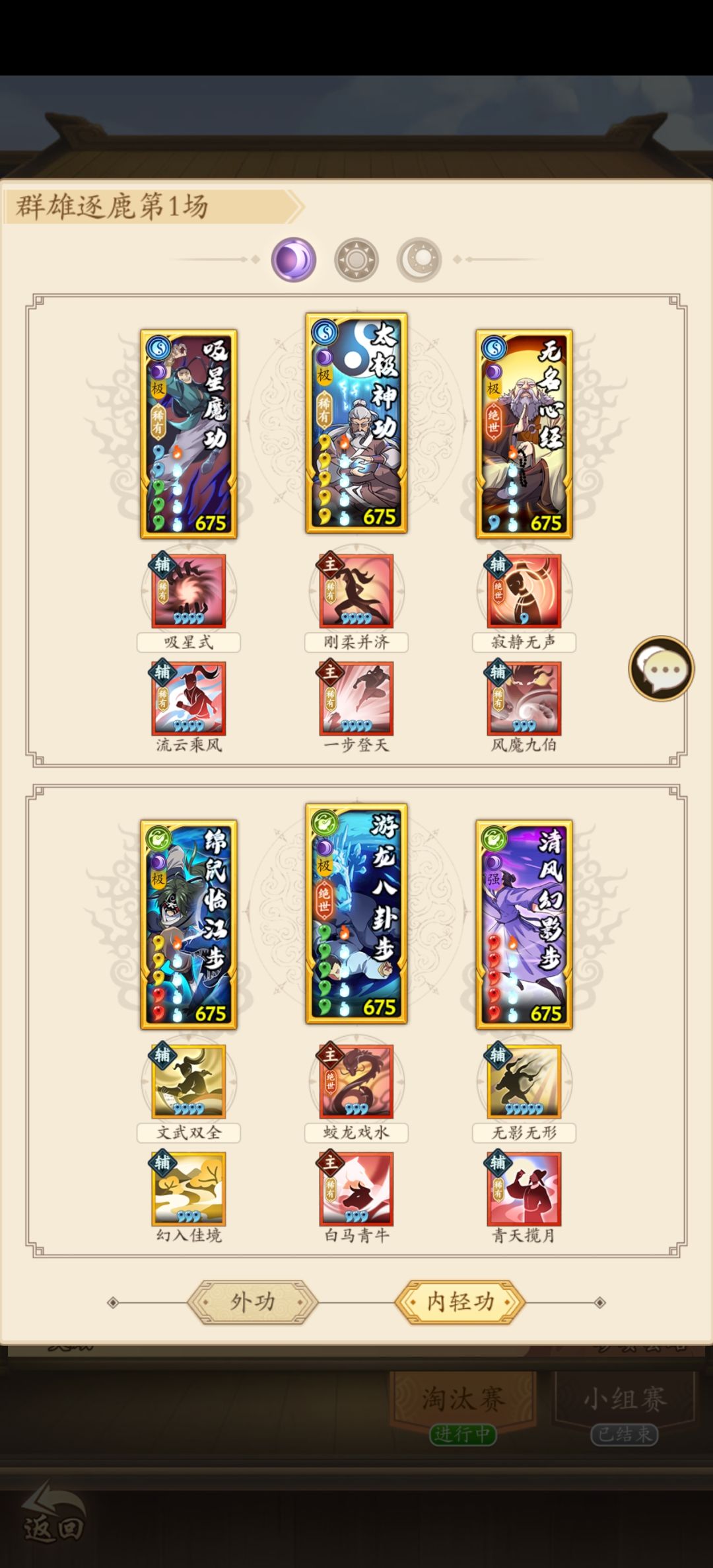 3为自制的平步游龙刀,压力不大上清可换成易筋经,让自身蓝量被压到50%以下,吃锦鼠3%招式加成和平步青云5%招式加成,相当于常驻继承四高调四后起,建议主太极,我是金钟精通太多换不了了,而且个人对太极未来堪忧,阴刀其实一直在被暗削,个人预测是从实减削弱,清化劲普及,破盾普及上来继续削,干脆到时候金钟换无名一步到位。