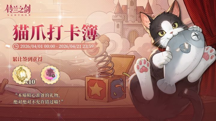 《铃兰之剑》愚人节猫爪打卡簿活动开启 累计签到免费领十抽