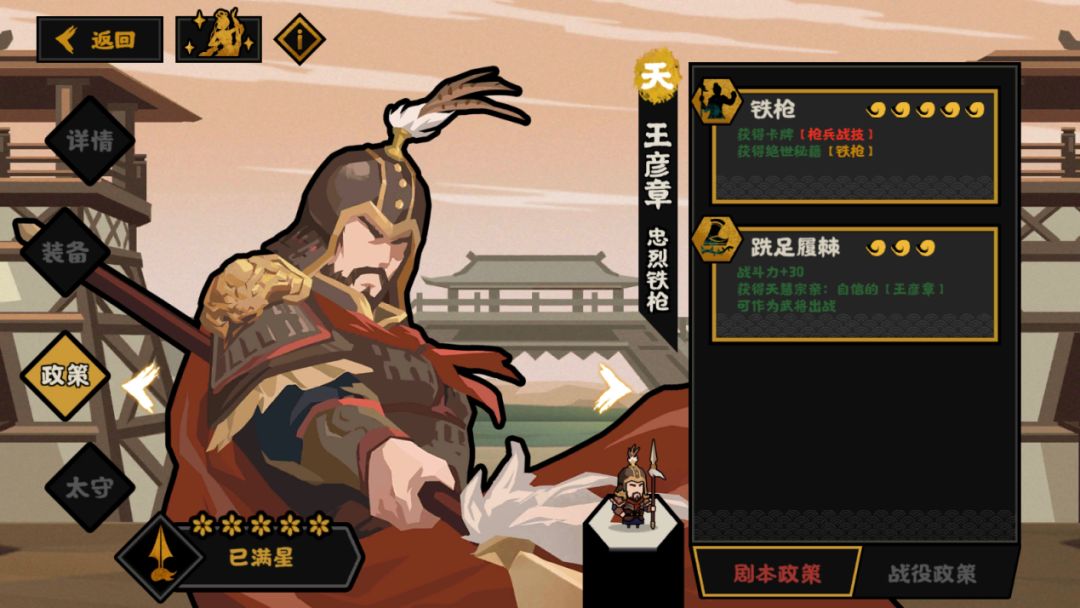 政策的优点在于:政策施行简便,武将技数值简单粗暴,同时自身宗亲也能搭配秘籍给予枪兵一定的强化,邪道玩法下可做到无限叠甲~