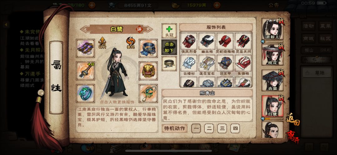 恒山派弟子派遣支线【千里追凶】奖一件衣服