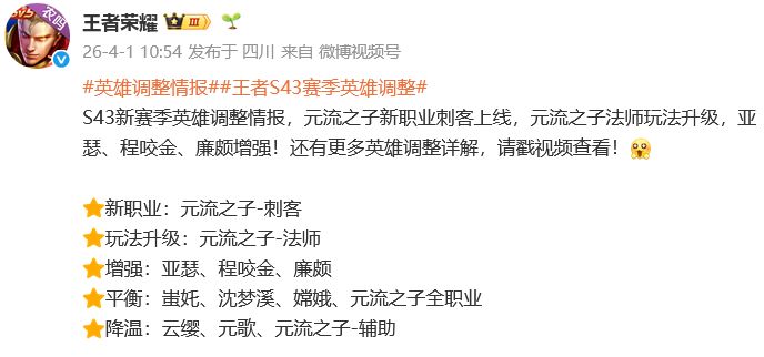 官方官宣多位英雄调整,首先是元流之子的玩法大改:法师版重做,强普变成传导伤害,2技能能边走位放,但命中变难,大招则是范围全覆盖,整体机动性提高但爆发没了。