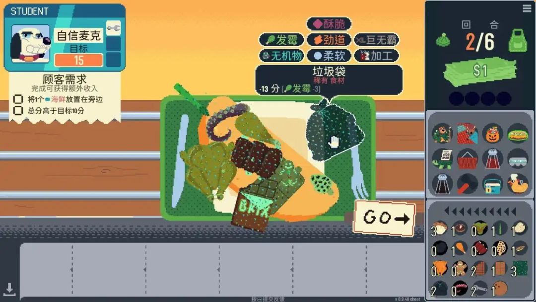 这款游戏巧妙的将卡牌构筑肉鸽玩法与卷饼玩法结合。你将扮演一位学校食堂的新厨师,通过不断卷饼来满足各位学生的需求。游戏在玩法上有点《小丑牌》那味,你需要不断“构筑”你的卷饼,来满足奇葩校长和学生们的需求。