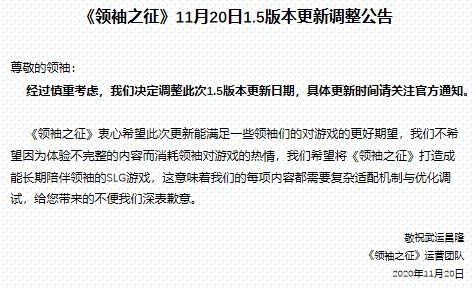 《领袖之征》11月20日1.5版本更新调整公告