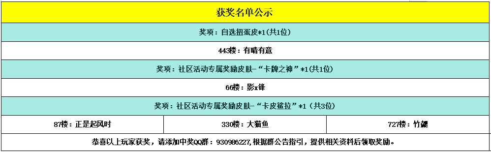恭喜以下幸运的小骑士获得活动奖励,请中奖的小骑士添加获奖群:930986227,请加获奖群后,登记相关获奖信息,超过15个自然日未进群未登记视为放弃奖励~