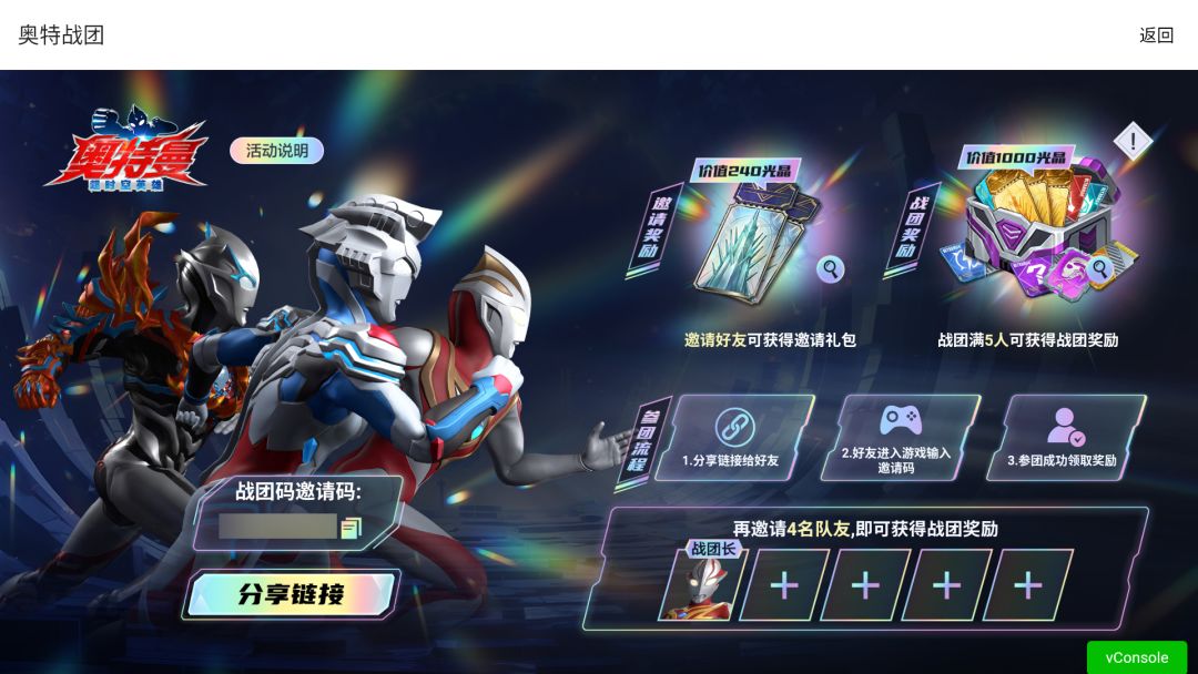假期好时光,怎能独自冒险?快将游戏分享给身边的好朋友,邀请他们一同加入《奥特曼:超时空英雄》,一起抽银河奥特曼、打团本、闯竞技场,并肩守护宇宙和平,解锁专属社交乐趣!