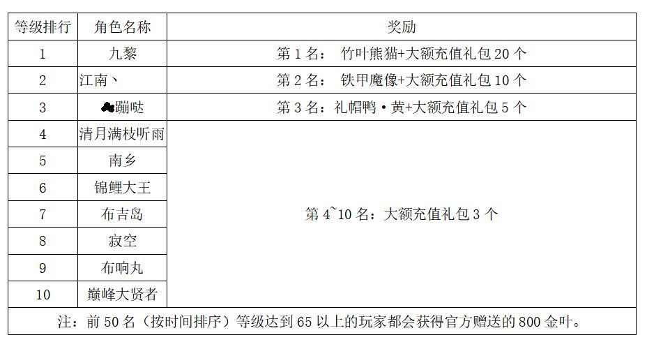注:以上活动排名均以服务器时间为准。新区排行榜活动如发现存在违反游戏相关规定使用游戏外的辅助工具进行作弊将取消获奖资格。