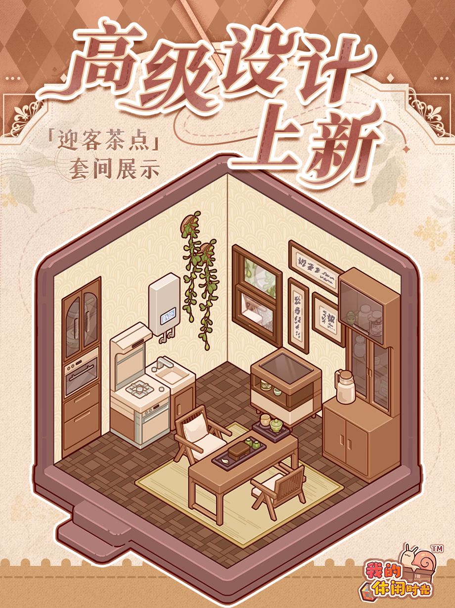 4月10日-4月12日期间,在「高级设计」中使用「高级设计稿」进行设计即有概率获得「迎客茶点」套间系列家具,喜欢这套家具的小蜗千万别错过哟~