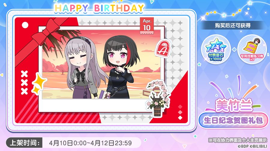 ※本轮次贩售结束后,后续该生日礼包的再贩形式与再贩时间待定。