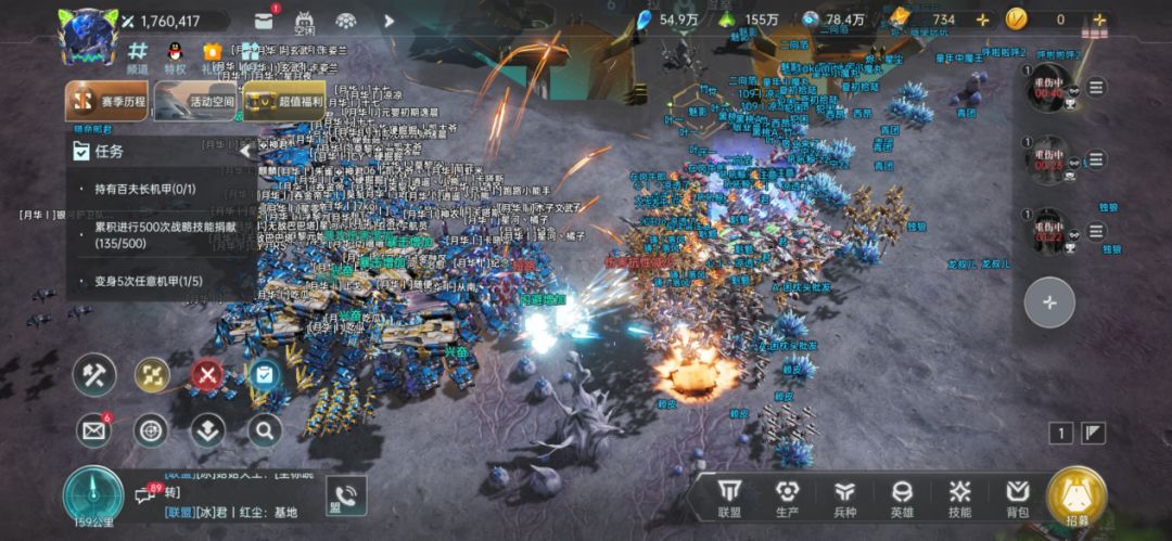 当晚约19:30,双方完成各自联盟BOSS挑战后,战场气氛趋于紧张。蜜雪冰城预判对手可能采取卡点宣战策略,遂提前安排人员将基地部署至实验室范围内。月华千星也迅速组织人员拆除蜜雪冰城基地,并组织本联盟堡垒落地抢占领地。