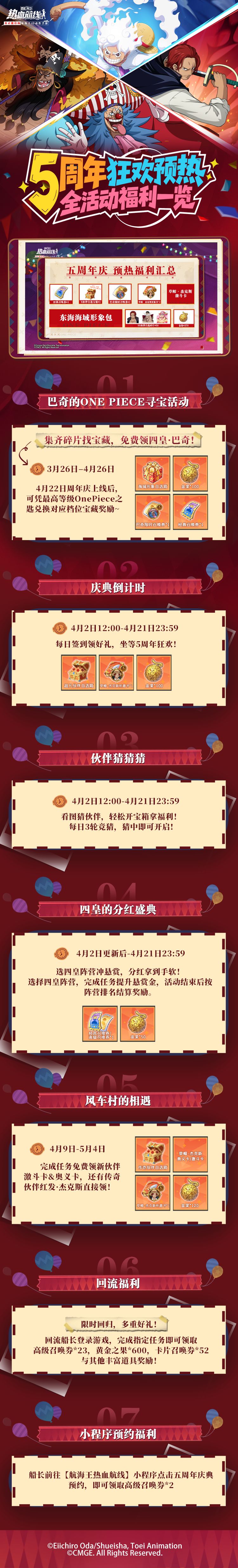 在五周年庆即将到来之际,期待与更多船长共赴新征程,一起书写属于我们的航海传奇!后续还将开启更多惊喜活动,船长们敬请期待~