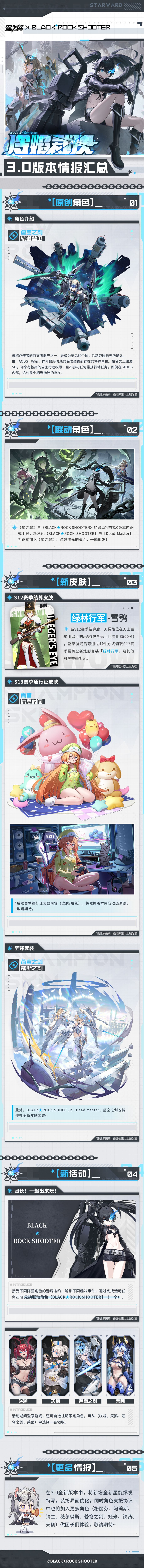 团长们久等了!3.0版本前瞻已送达!《星之翼》×《BLACK★ROCK SHOOTER》联动上线,联动角色【BLACK★ROCK SHOOTER】、【Dead Master】与原创角色【虚空之剑】即将登场!夏普、苍穹之剑皮肤来袭,更有全新周年活动等你参与!