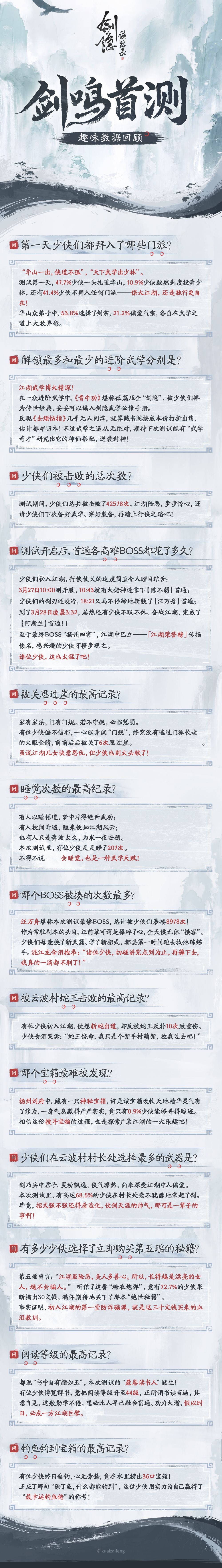 剑鸣首测已正式收剑,但江湖暂歇,快意未停!少侠们在江湖中留下的传说(和黑历史)全都被我们偷偷记录下来啦!