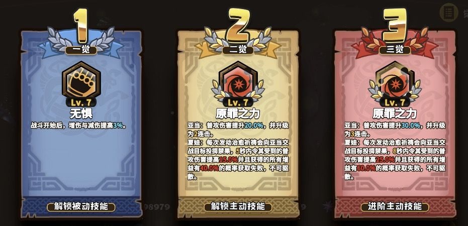 1️⃣亚当:普攻伤害+30%,升级为3连击,配合原技能25%吸血,生存与输出大幅⬆️