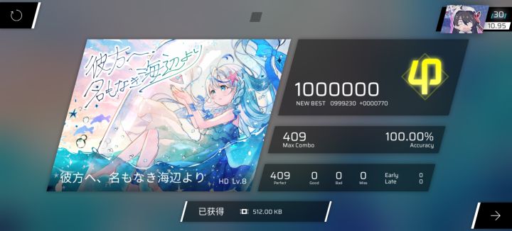好几天没玩了,结果今天一玩手感特别好,好多曲子的分数和ACC都增加了,这首曲子更是直接AP了