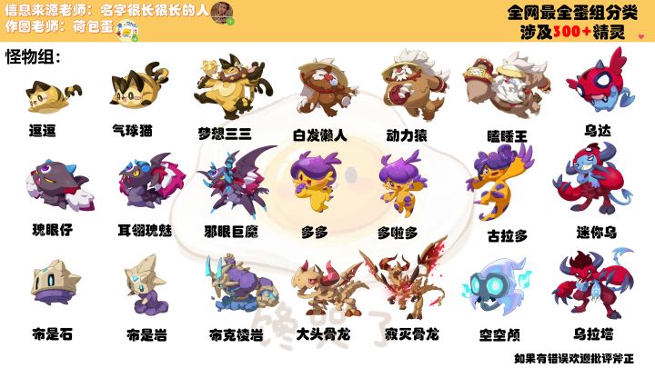 一图流!300+精灵全蛋组分类,新手必备。
