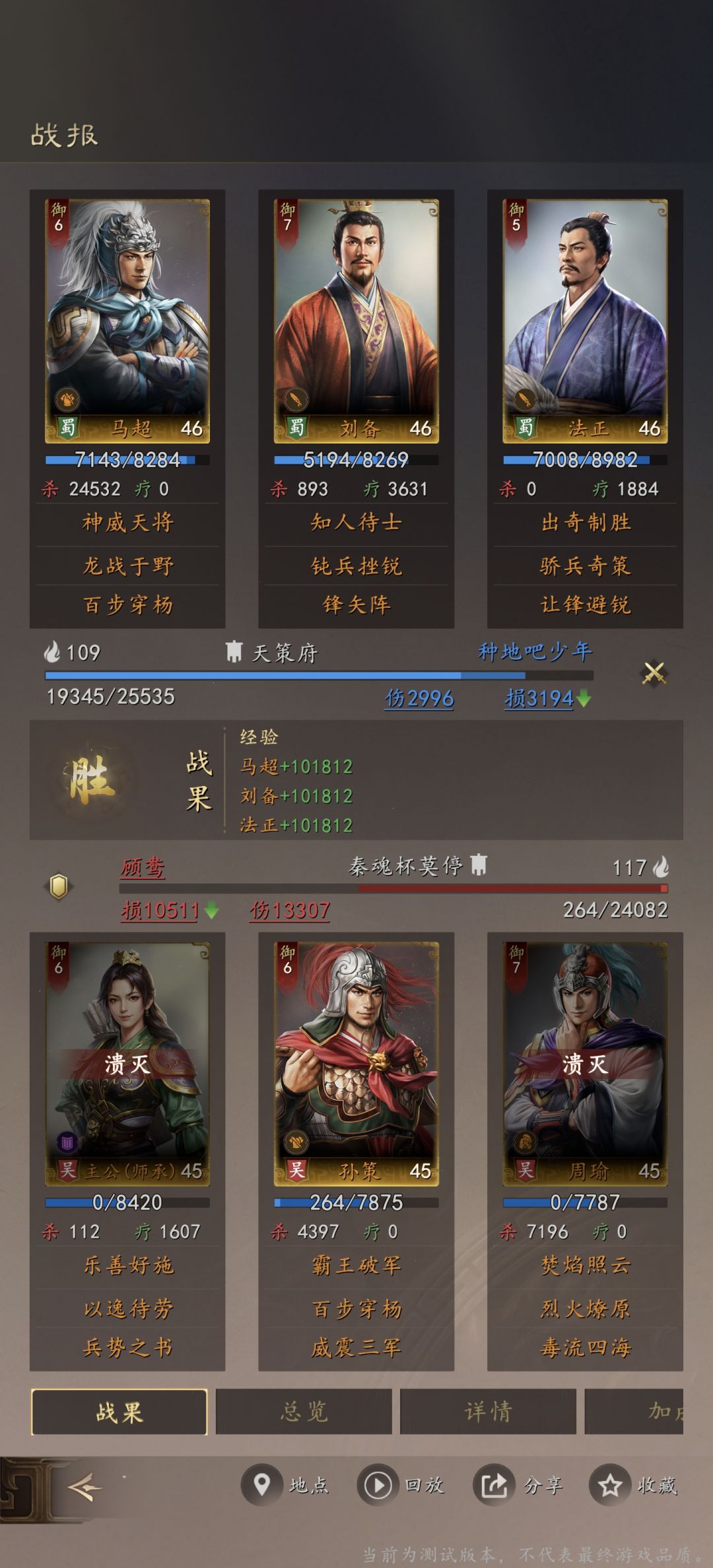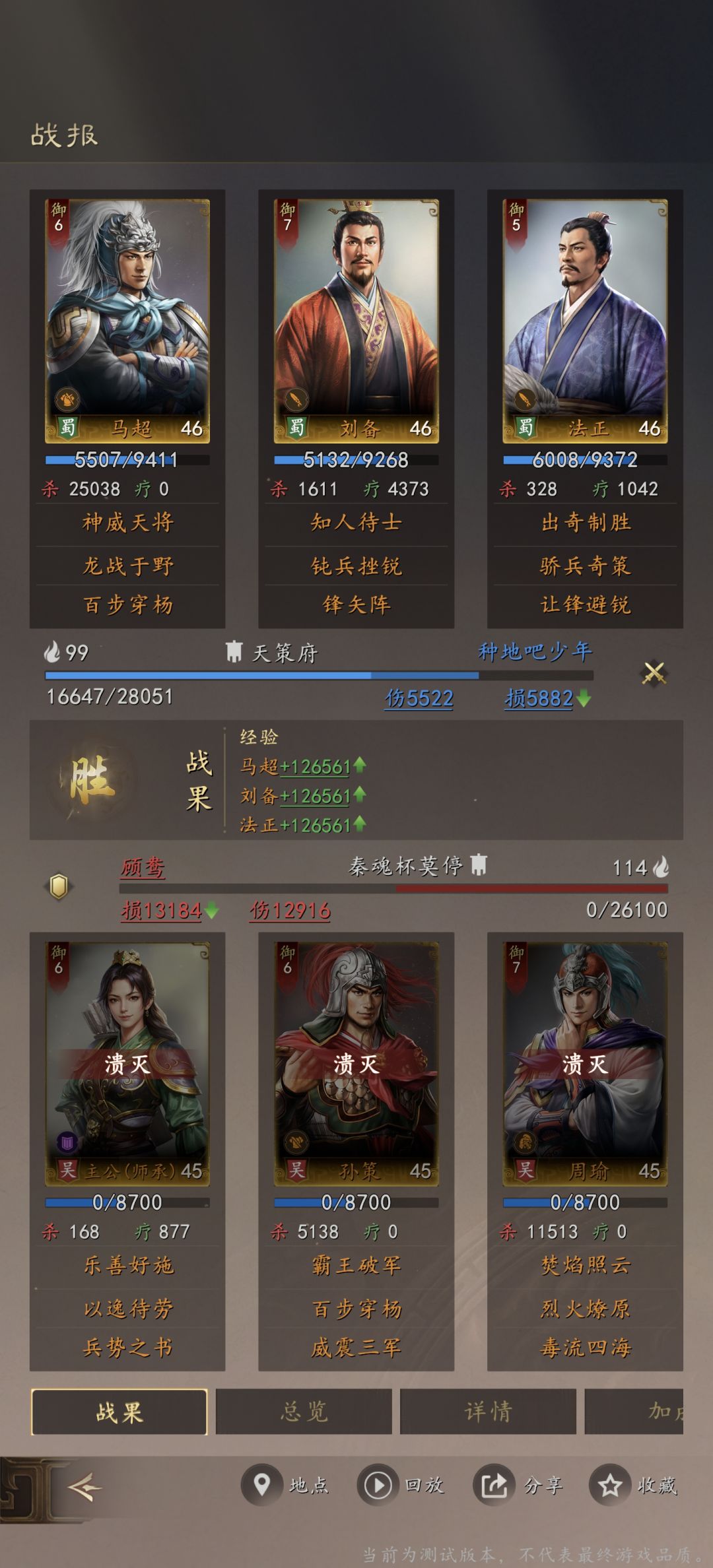 战法搭配如图,没有概率全是极致的数值!唯一怕的也就是一手周瑜弓,不过骄兵给到周瑜和孙策周瑜弓也白给!这里法正要调速调到一速。