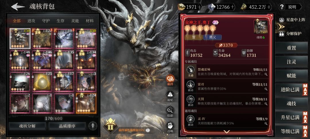–优势:利用雷系羁绊的《雷神+奥丁》提供终伤增益,《始源》魂核回血保障生存。