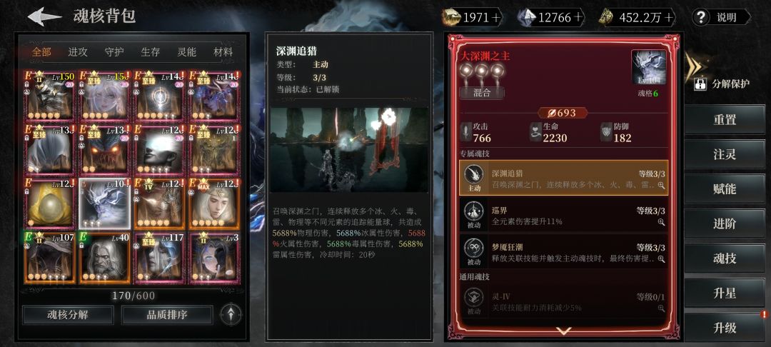 之后的魂核释放顺序也很简单,如果想打瞬间爆发,可优先选择魂核被动里面的伤害、爆伤增幅类,并自行判断持续时间,再选择释放的顺序。最后再释放新出的魂核《大深渊之主》以及《拉莱耶之主》伤害会显著提高。以下为参考图![[表情_开心]](https://img-tc.tapimg.com/market/images/48516f625646b5ea2c66f0cab3c9c52a.png)