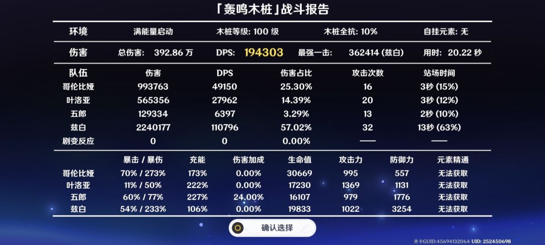 测试了一下兹白队的dps,第一张图是只打了一个循环