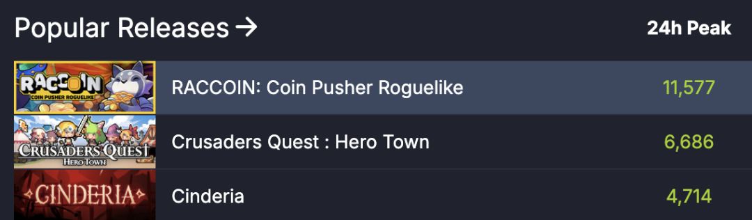 最近,一款肉鸽推币游戏登上了Steam 畅销榜。上线首日卖出10万份,峰值同时在线11500人,最高爬到畅销榜第四名。