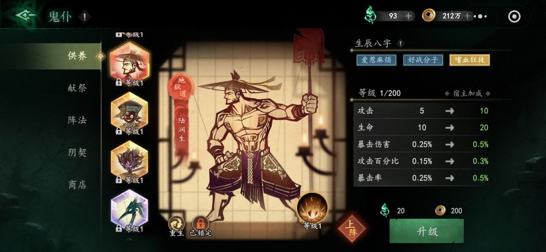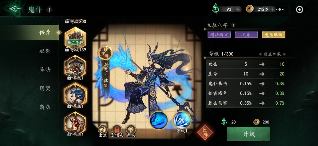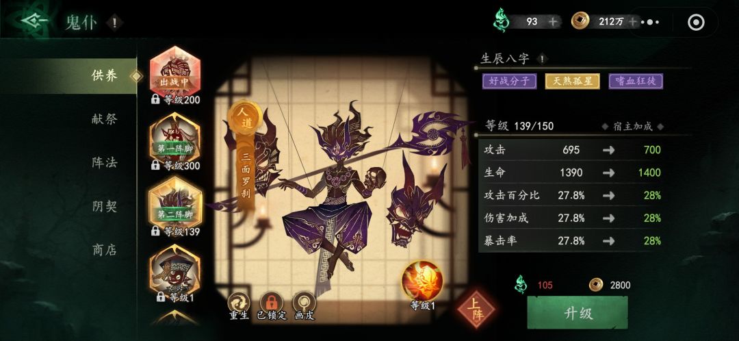 虽然看起来是只有紫好战三蓝不给力,但是实战效果相当的夯,没吃到修罗且被动基本没有的情况下,直接过了卡的地狱31关。