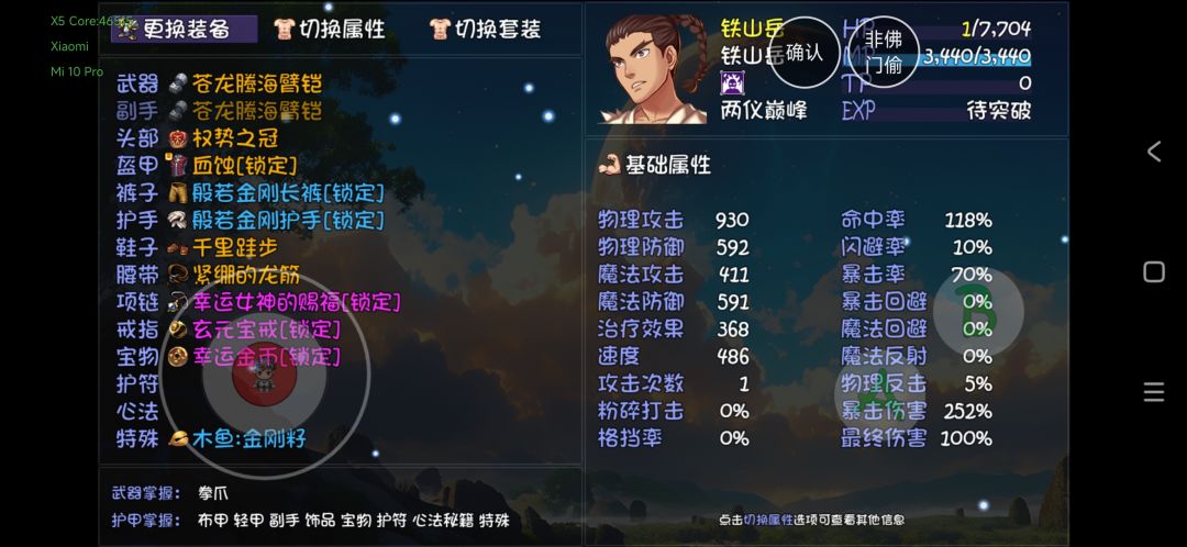小明一速金钟58W,换永恒枪65W,盲女降魔棍107W,铁山裂天手122W,盾妹肉装+辅助装援护。